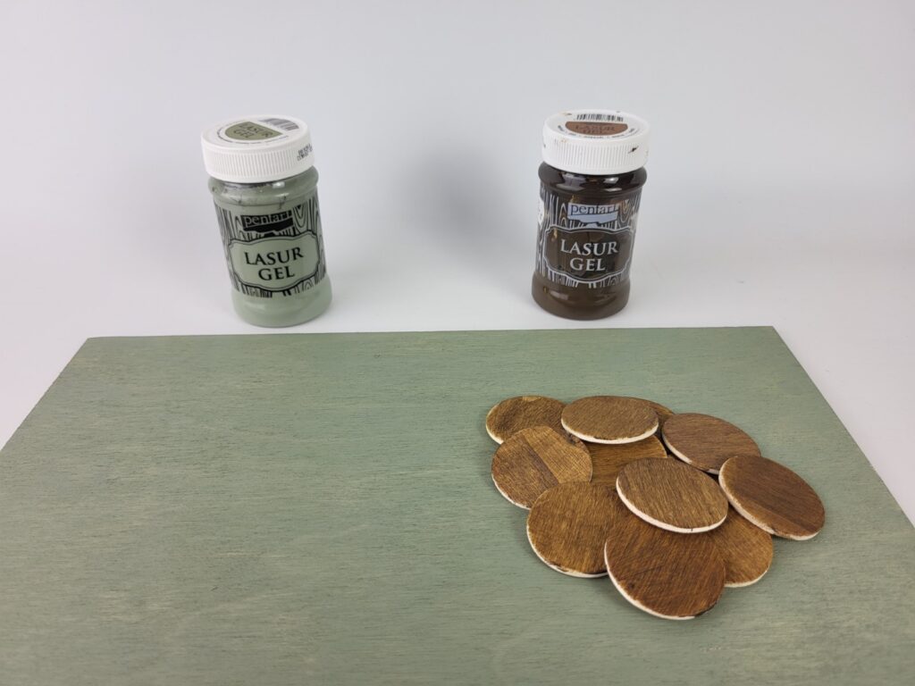 Az elkészítést az anyagok beszerzése után, a rétegelt lemez lefestésével kezdtem. Azért választottam a lazurgélt, mert könnyen lehet festeni vele, mivel nem lesz csíkos.
