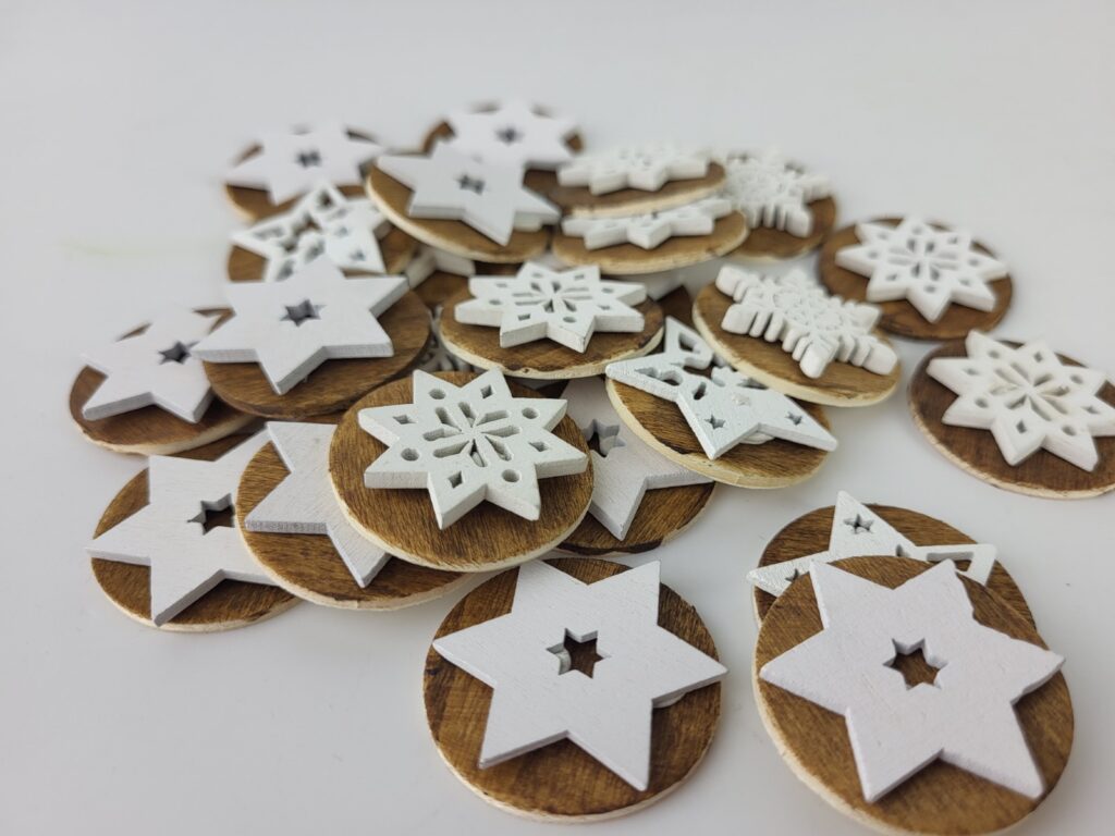 Ezt követően a barnára festett korongokra ragasztottam a fehér csillagokat.